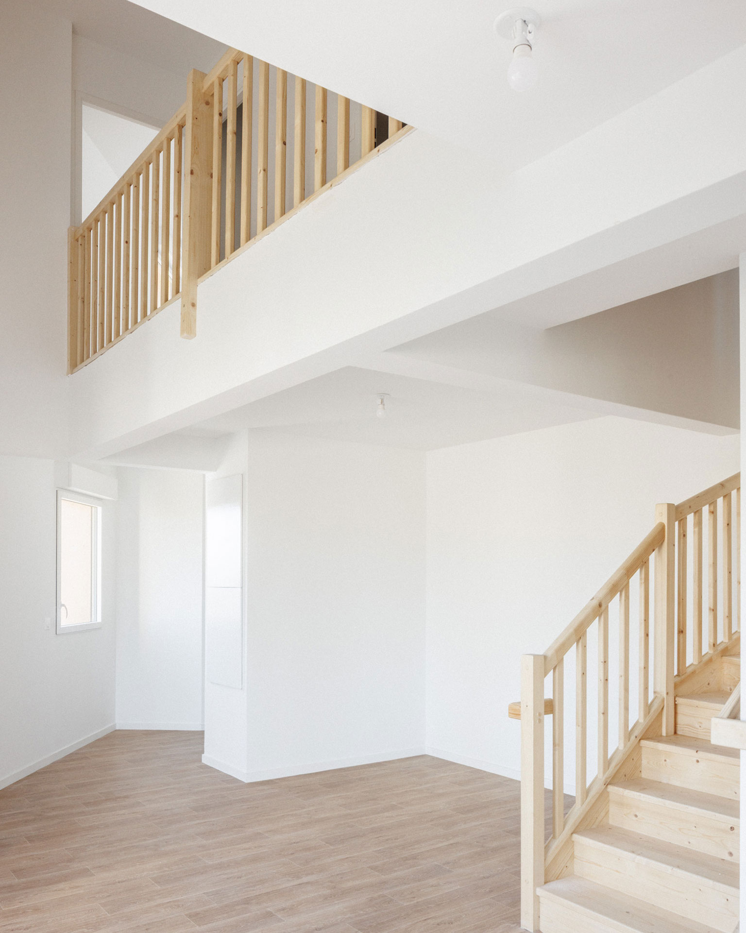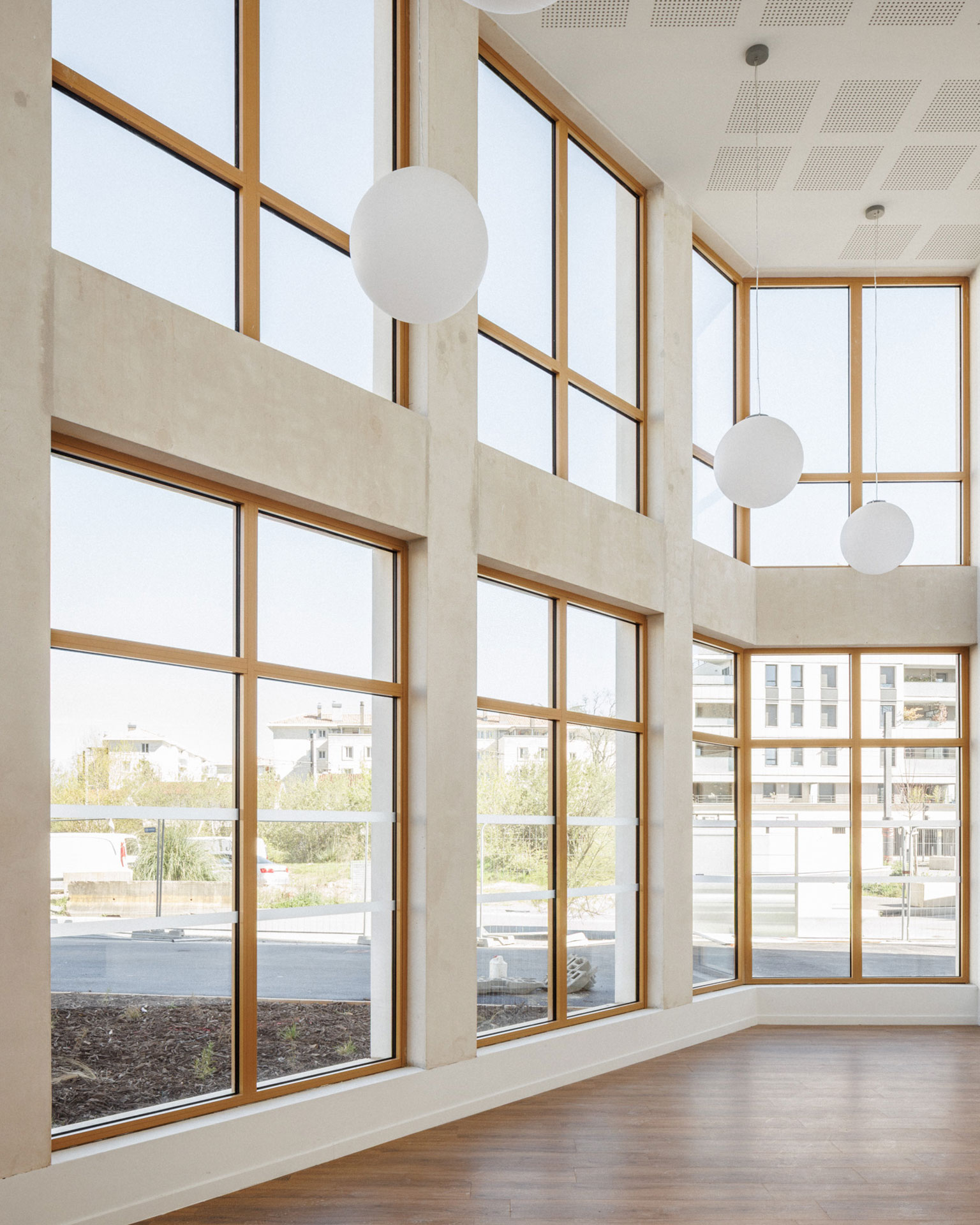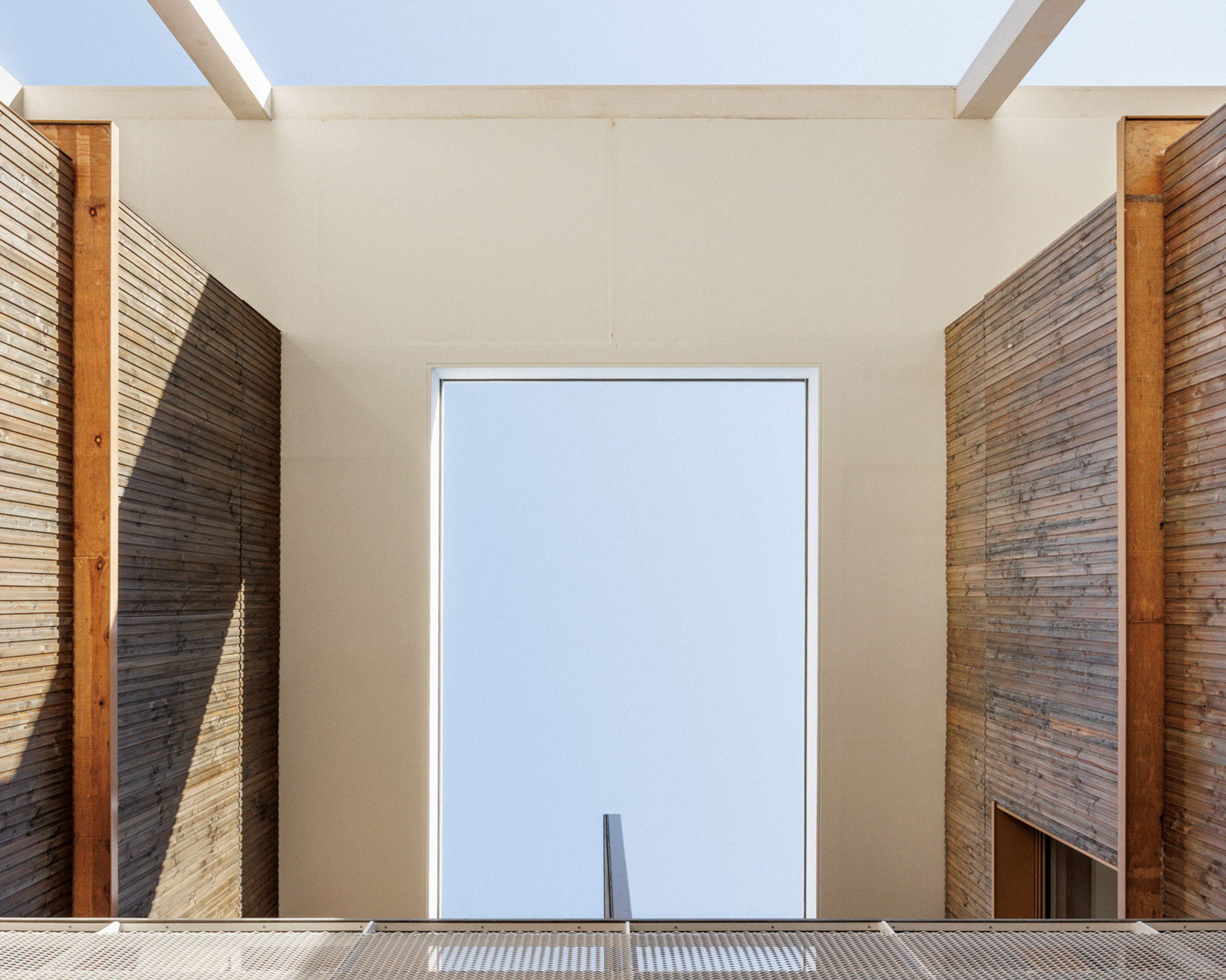 La parcelle du projet, dont le bâtiment occupe la totalité de l’espace au sol est un bloc massif sculpté sur les côtés, afin d’apporter de la lumière au centre et d’affiner ce bloc.