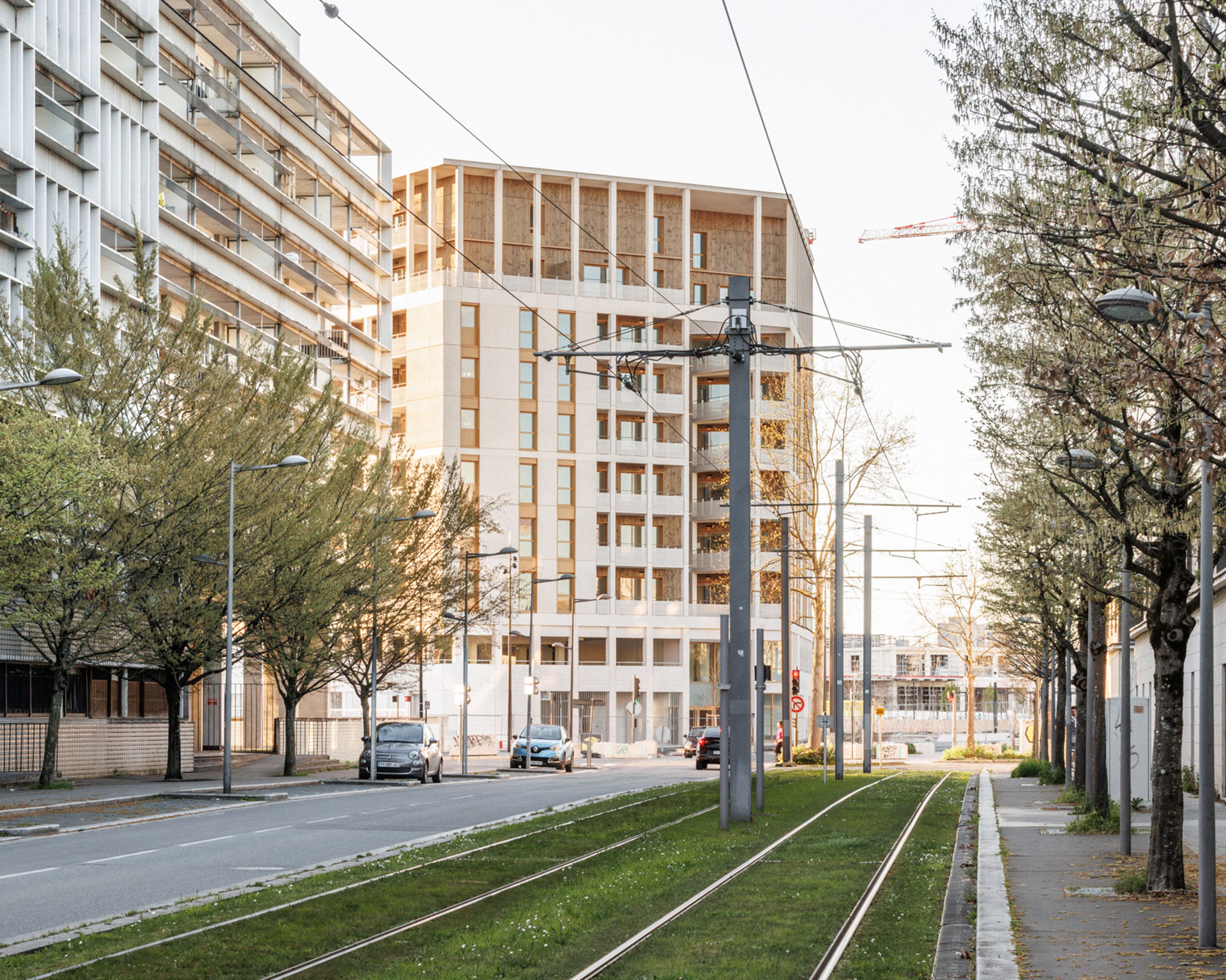 Les plantations prévues participent à maintenir le lien paysager souhaité en créant un filtre vert qui anime les façades et déminéralise le socle, tout en offrant confort aux futurs usagers.
