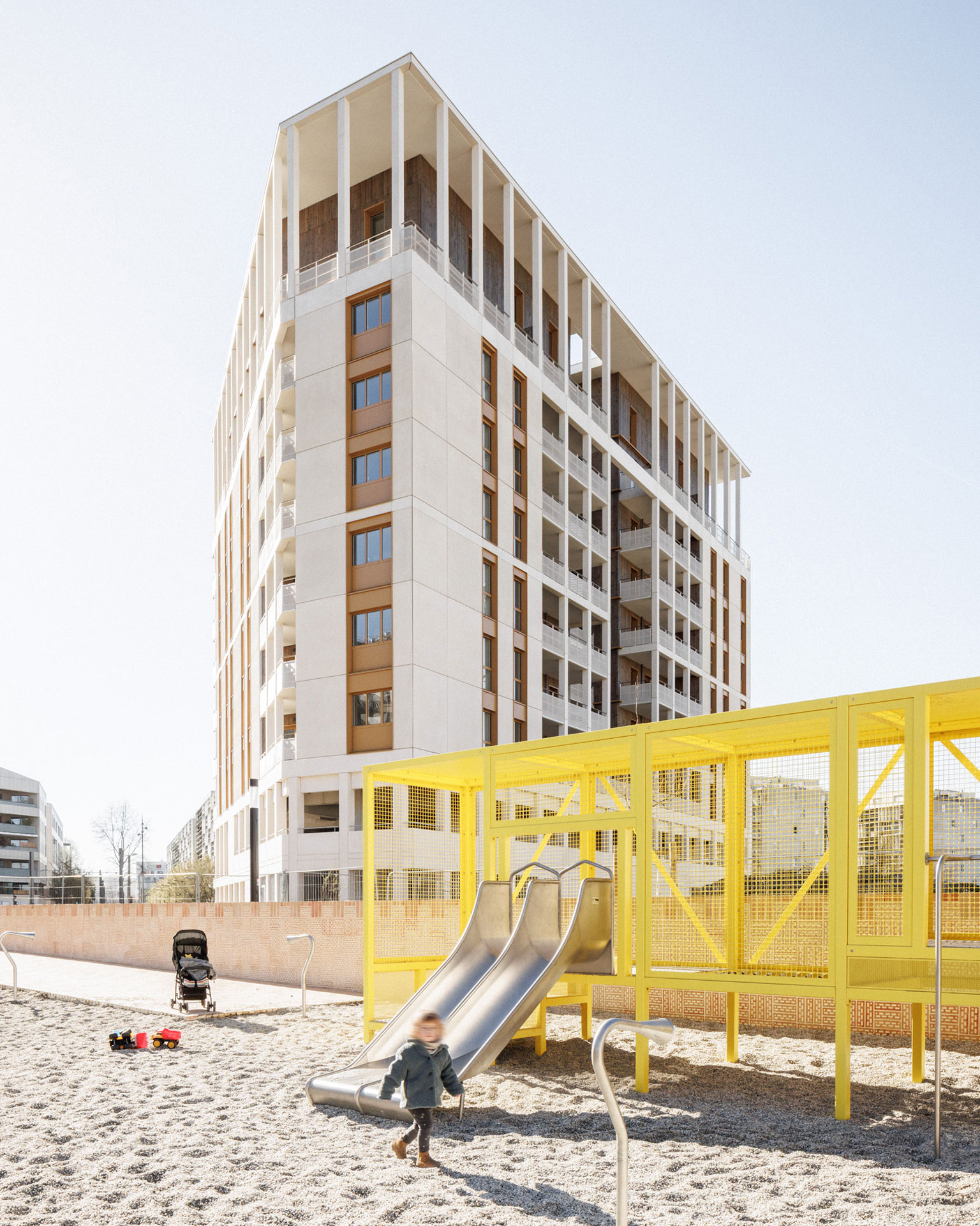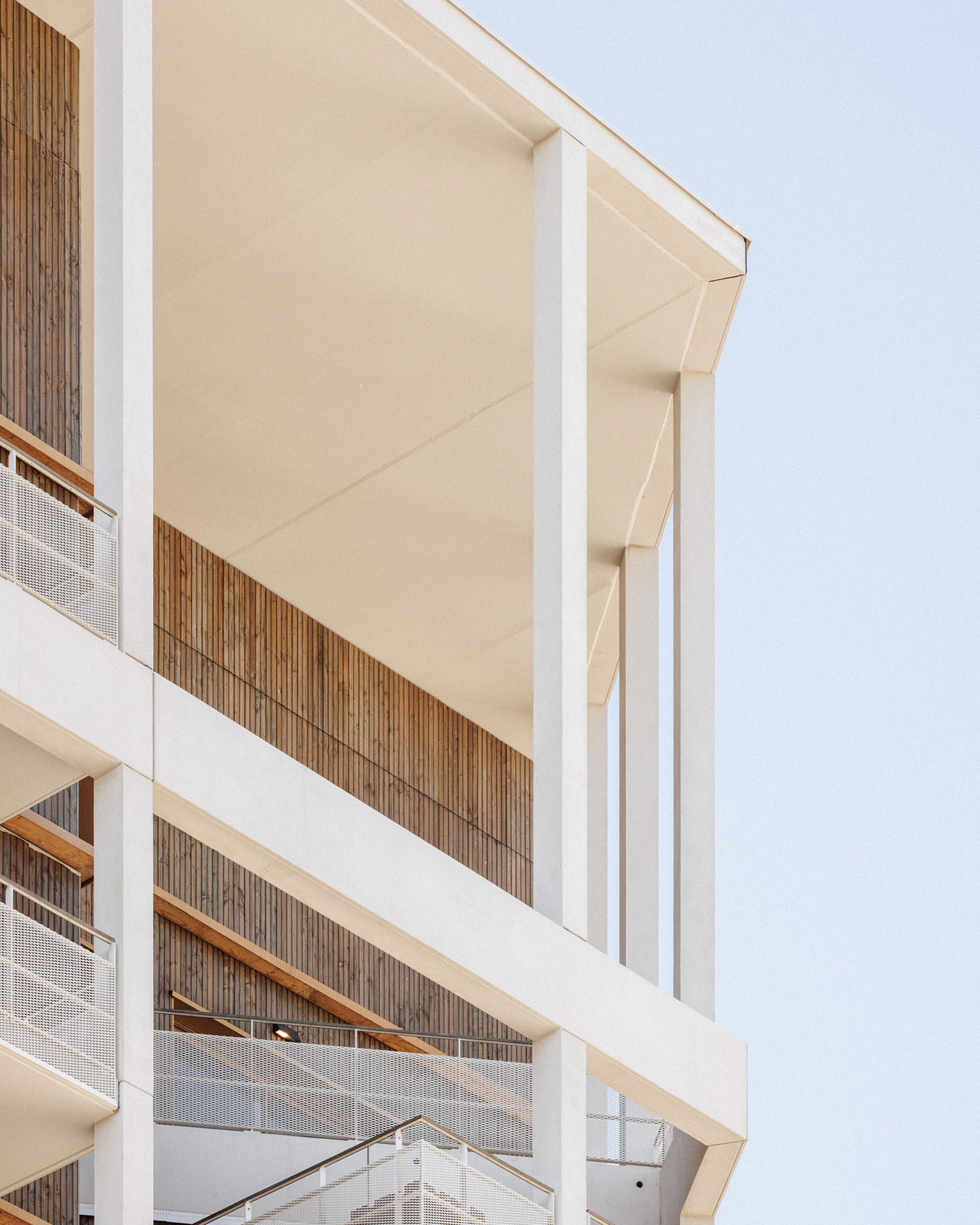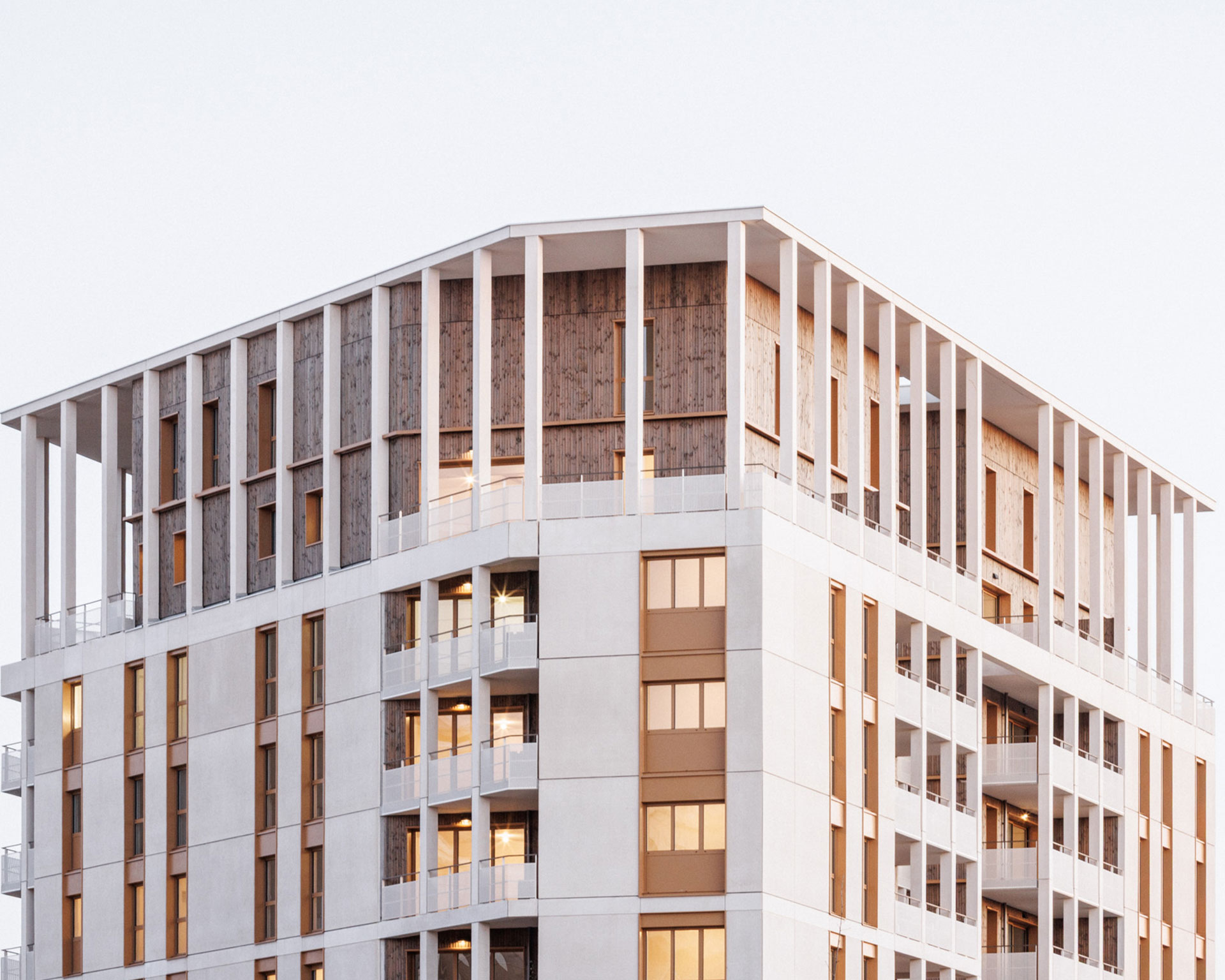 Le projet architectural s’articule autour d’un bâtiment accueillant un parking aux deux premiers étages, et des logements à partir du R+2.